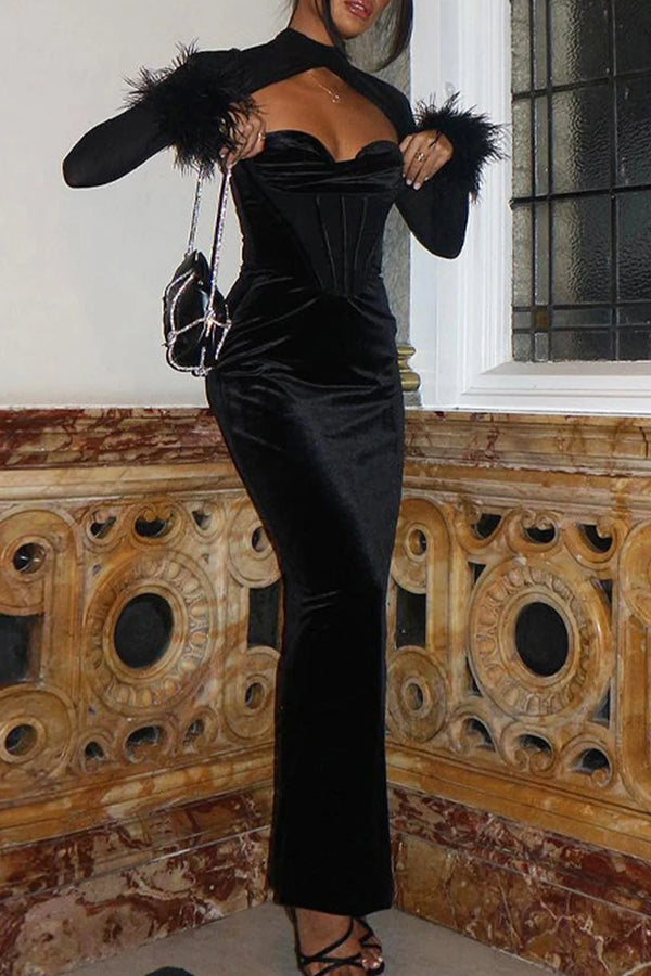Sexy Pink Velvet Long Sleeve Mermaid Long Prom Dress Ideas, Evening Party Dresses,WGP1754