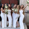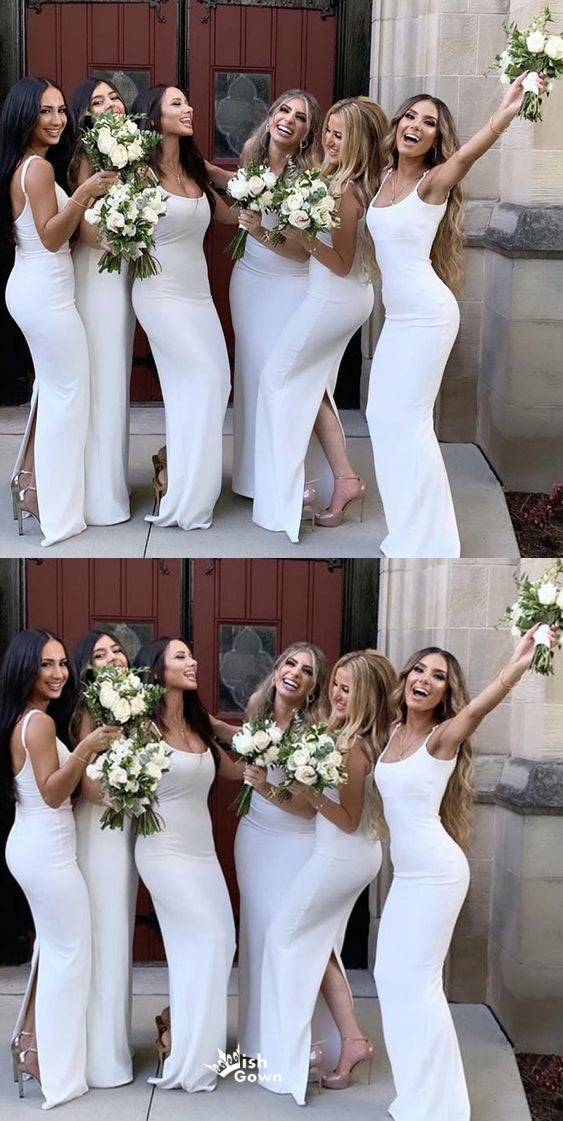 Sexy White Mermaid Spaghetti Straps With Slit Maxi Long Bridesmaid Dresses, WGM148