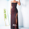 Vintage Burgundy Sheath Spaghetti Straps Slits Long Wedding Guest Bridesmaid Dresses, WGM114